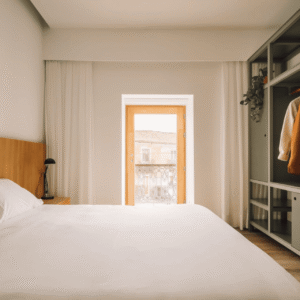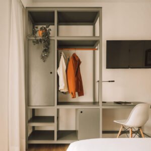 Os nossos quartos King oferecem o equilíbrio perfeito entre conforto e simplicidade. Cada quarto está equipado com uma cama de casal espaçosa e tudo o que precisas para uma estadia relaxante: casa de banho privativa com cabine de duche, ar-condicionado, televisão com box, Wi-Fi gratuito e uma secretária para trabalhar ou planear os teus dias.